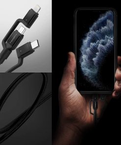 Spigen C10i3 Essential 3in1 Lightning + USB-C + Micro USB Dayanıklı Hızlı Şarj ve Data Kablo MFI Lisanslı 1.5 Metre Black