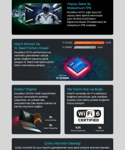 Casper Excalibur G770 Intel Core i7 12700H 16GB 500GB SSD RTX3050 Freedos 15.6″ Taşınabilir Bilgisayar G770.1270-BVJ0X-B