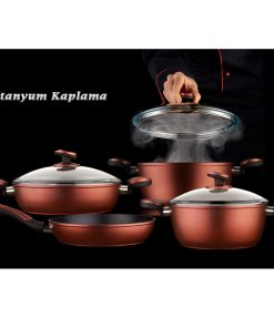 Cem Titanyum Tencere Tava Seti 7 Parça Derin Basık Karnıyarık