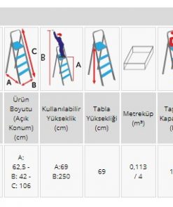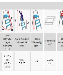 Perilla 2 Basamaklı Katlanır Metal Merdiven Toz Mavi Renkli Boyalı