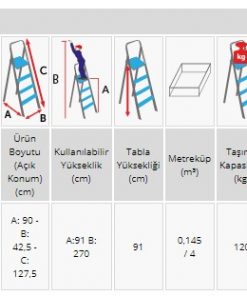 Perilla 4 Basamaklı Katlanır Metal Merdiven Toz Mavi Renkli Boyalı