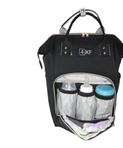4KF Anne Bebek Bakım Sırt Çantası Fonksiyonel Su Geçirmez Çanta Siyah
