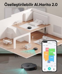 Al, evinizin doğru haritalarını oluşturur, böylece geniş bir alan yelpazesini etkin bir şekilde temizleyerek size zaman ve çaba tasarrufu sağlar ve her zaman kapsamlı bir temizlik elde edersiniz.