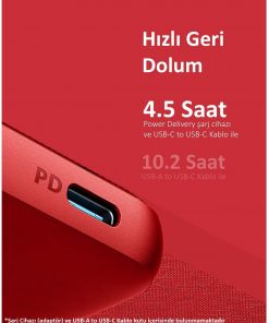 Şarj Süresi: 4,5 saat (18W USB PD şarj cihazı ve USB-C – C kablosu ile)
