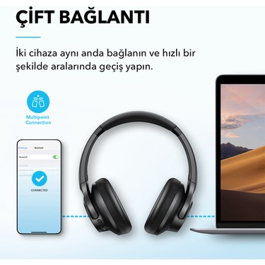 Anker bluetooth kulaklık, Soundcore uygulaması ile entegre çalışabilir. Uygulamada yer alan özelleştirilebilir EQ ile dinleme deneyimlerinizi kendinize göre ayarlayabilir ve rahatlama için beyaz gürültü gibi donanımlardan yardım alabilirsiniz. Bunun yanı sıra kulaklıkta farklı modlar da bulunur. Kulaklığınızı çıkarmadan çevrenizle bağlantıya geçmek istiyorsanız şeffaflık moduna geçebilirsiniz. Sessizlik istediğinizde ise normal moddan gürültü engelleme moduna kısa sürede bağlanabilirsiniz. Pratik kullanım imkanı sunan cihaz, modlar arasında kısa süreli geçiş yapma olanağı tanır. Anker kablosuz kulak üstü kulaklık ekstra kolaylık sağlamak adına aynı anda iki cihaza bağlanabilir. Bağlandıktan sonra ses çalan cihaza otomatik geçişi de bluetooth kulaklık kendiliğinden gerçekleştirir.