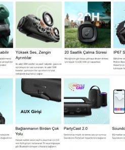 Anker Soundcore Motion Boom Plus Kablosuz Bluetooth Hoparlör – 80W Stereo Ses – IP67 Suya Dayanıklılık – 20 Saate Varan Şarj – Siyah – A3129 (Anker Türkiye Garantili) ean : 194644098421