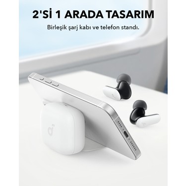 Anker Soundcore R50i NC Kablosuz Bluetooth Kulaklık – 2'si 1 Arada Şarj Kutusu ve Telefon Standı – 10 Saat Dinleme Süresi – Beyaz – A3959 (Anker Türkiye Garantili)