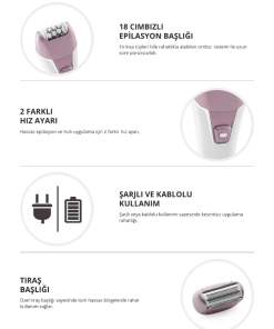 - Hassas epilasyon ve hızlı uygulama için 2 farklı hız ayarı