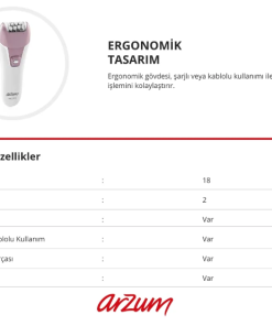 Arzum AR5059 Valente Şarjlı Epilasyon Cihazı ean : 8693184960073