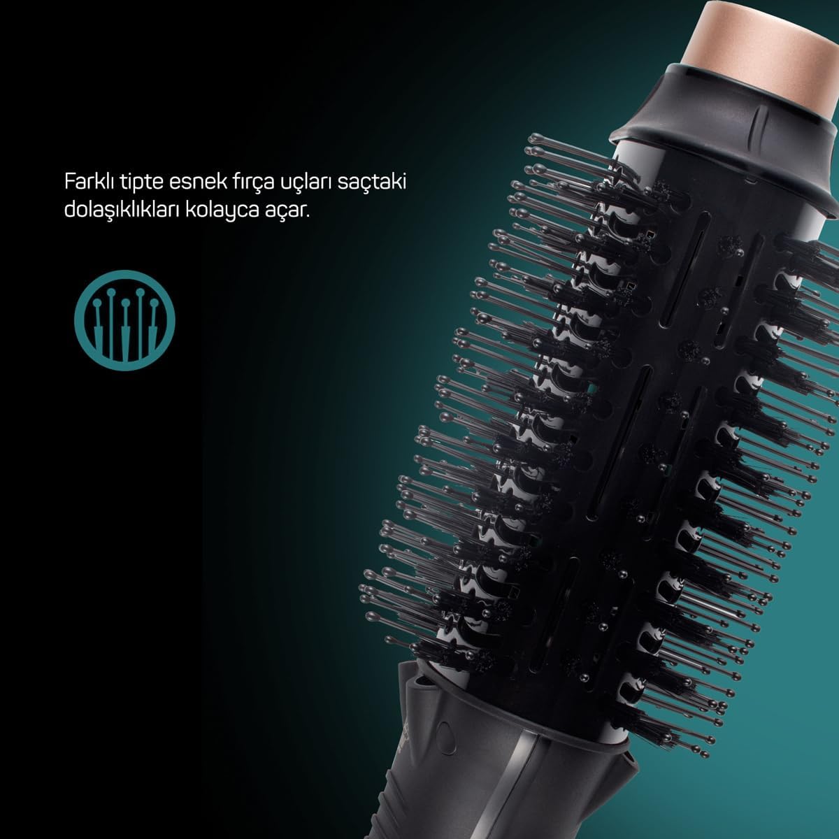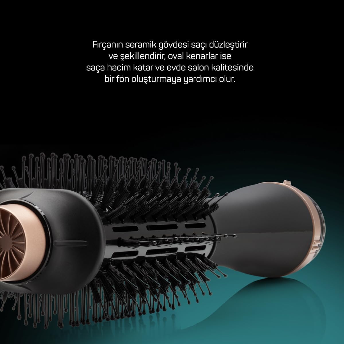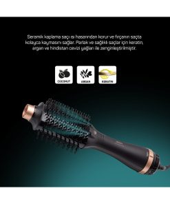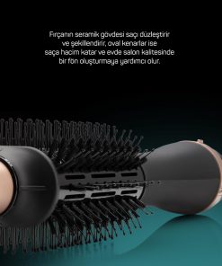 - Özel oval tasarımı sayesinde saçlara istenildiği gibi fön, bukle ve dalga şekilleri verilebilir.
