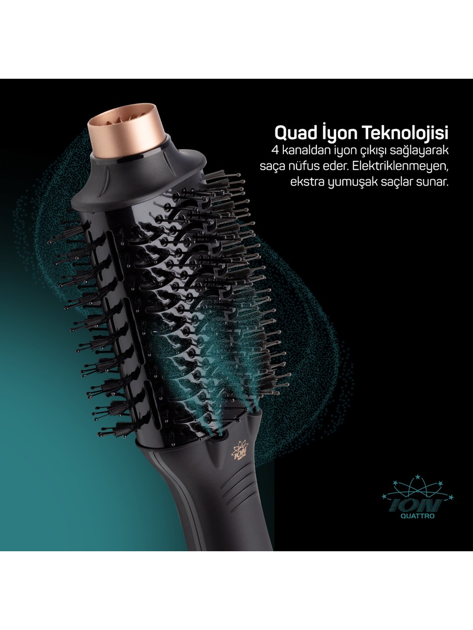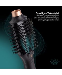 - Arzum AR5083 Volume Pro Ultra Hava Üflemeli Şekillendirici, Quad İyon teknolojisi ile cihazın dört tarafından da iyon çıkışı sağlayarak saçların elektriklenmesini engelleyerek saçları daha yumuşak ve kolay şekil alabilen bir hale getirir.