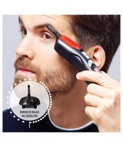 Dikey düzelticinin çift taraflı bıçakları; kulak ve burun içerisindeki istenmeyen kılları çekmeden, güvenli bir şekilde düzeltilmesini sağlar. Dar ve dikey başlığı sakal ve kaşlarda daha rahat bir şekillendirme sunar.