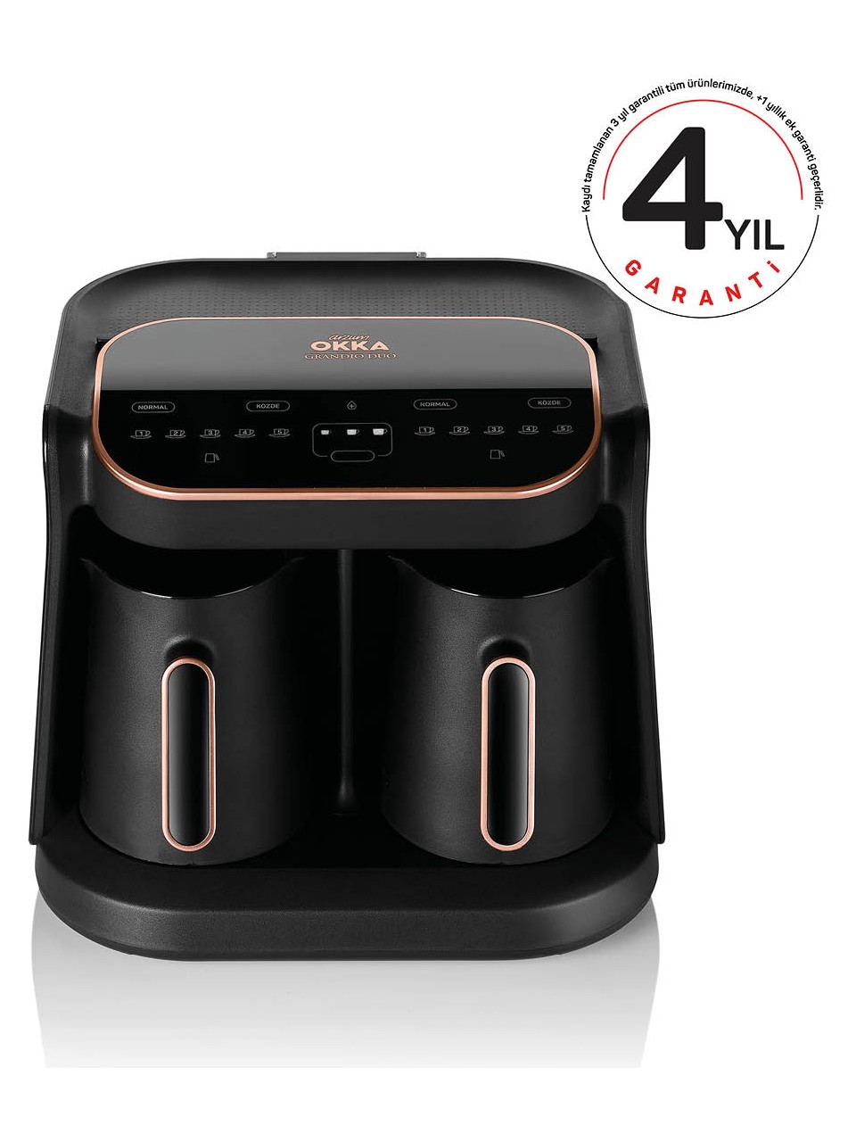 OKKA Grandio Duo, dokunmatik paneli sayesinde maksimum kullanım kolaylığı sağlar. Led aydınlatmalı dokunmatik panel üzerinden tek dokunuş ile Türk kahvenizi yapabilir, fincan boyutunu ayarlayabilir, 10 fincana kadar seçim yapabilisiniz. İnteraktif bildirimleri ile tüm uyarı ve bildirimleri dokunmatik panel üzerinden görebilirsiniz.