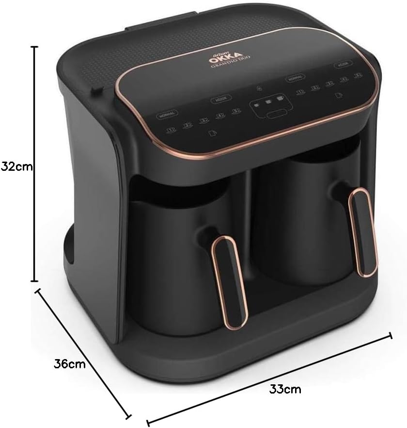 Arzum OKKA Grandio Duo, Türk kahvesini tadını çıkara çıkara, ağır ateşte bol köpüğüyle ideal kıvamında pişirir. Dileyene şekerli dileyene sade tek seferde 10 fincan kahve pişirebilir.