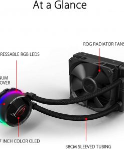 - ROG Ryuo 120 Hepsi Bir Arada Sıvı CPU Soğutucusu/ Renkli OLED, Aura Sync RGB ve ROG 120 mm radyatör fanına sahip soğutucu