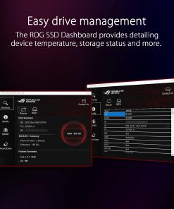 Kullanisli ROG SSD Dashboard yazilimi sicaklik, depolama durumu ve genel durum gibi tüm önemli bilgileri gösteriyor.