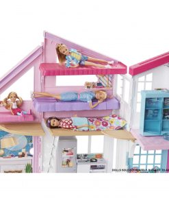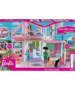 Barbie'nin Muhteşem Malibu Evi, yaratıcı dönüşümler ve pek çok hikaye öğesiyle çocukların hayal gücünü harekete geçirmeye hazır. Barbie bebek evi açılarak çok sayıda oyun alanını ve iki kat eğlenceli özellikleri ortaya çıkarıyor. Çocuklar 2 katlı, 60 santimetre genişliğindeki bebek evinin 6 odasını 25'ten fazla parça ile kendilerince dekore edebilir. Dönüşüm özellikleri ise oyun setine bir sürü farklı eğlence imkanı katıyor. Oturma odası bir eğlence odasına, banyodaki duş bir makyaj masasına, tavan ise 4 Barbie kız kardeşin uyuması için yer açan bir yatağa dönüşüyor. Banyoda lavabo ve duş bulunan bir tuvalet, mutfakta açılabilen bir buzdolabı ve fırın, çitte ise bahçede oyun için bir ızgara yapıştırması bulunuyor. Bebek boyutundaki mobilya ve aksesuarlar arasında pembe koltuk veya beyaz yuvarlak yemek masası gibi popüler tarzda klasik eşyaların yanı sıra servis takımları ve oyun tahtası gibi eğlenceli küçük eşyalar da var. Bazı parçalarda bebekler için bir tutma yeri bulunur (ayrı olarak satılır). Bu parçalar, aktif oyunları ya da hızlıca temizlemeyi kolaylaştıran "tak ve oyna" özellikleri ile tasarlanmıştır. Ev, katlanarak kolayca saklanabilir. Barbie bebeğin kız kardeşleriyle beraber oynadıkları, pijama partisi veya barbekü partileri düzenledikleri, doğum günü, tatil veya başka bir özel günü kutladıkları hikayeler anlatabilirsin! Barbie Malibu Evi ile anlatılacak sonsuz hikaye ve yaşamı keşfetmenin sınırsız yolu var, çünkü kızlar Barbie ile oynarken istedikleri her şeyi hayal eder! Barbie Malibu House, mobilya ve ev eşyaları içeren 25'ten fazla aksesuarla birlikte sunulur. Bebek dahil değildir. Renkler ve süslemeler çeşitlilik gösterebilir.