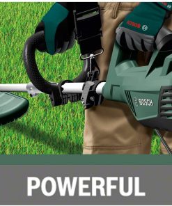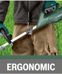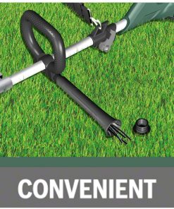 Ayarlanabilir tutamak ve kayış optimum alet dengesini ve konforlu çalışmayı sağlar. Kesici misina, biçme makinesinin emniyet braketinde muhafaza edilebilir.