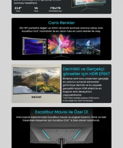 Casper Excalibur M.E238FHD-G 23.8″ 200Hz 1ms 300NIT (HDMI+Display) Curved Freesync + G-Sync FHD LED Monitör