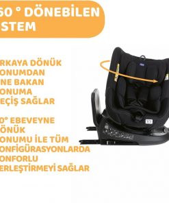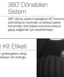 - 360° dönüş sistemi sayesinde kullanım kolaylığı, Isofix bağlantıları ve Destek Ayağı sayesinde her adımda daha güvenli kurulum sunar.