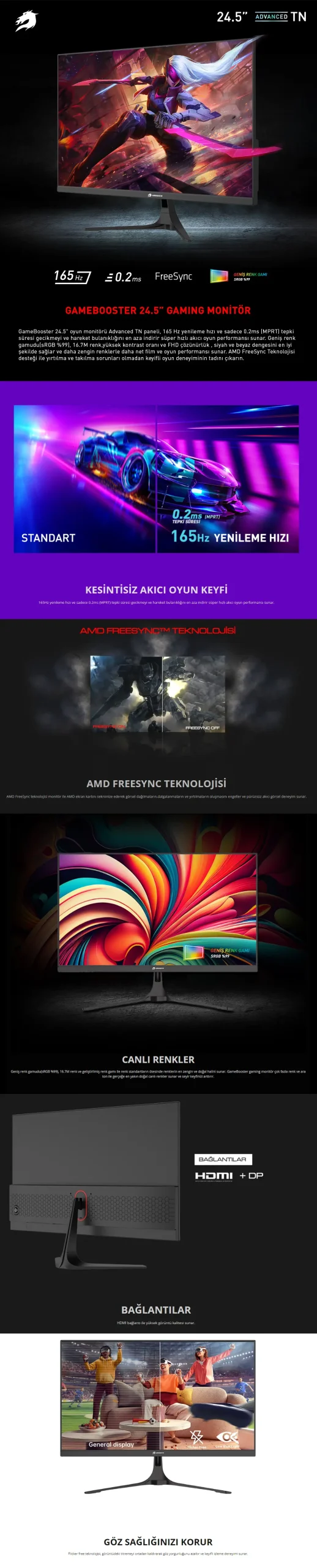 GameBooster GB-2516FF 24.5" 165hz 0.2ms Advanced Tn Panel Fhd Freesync, G-Sync 1xhdmı 1xdp Gaming Monitör EAN: 8682016343641