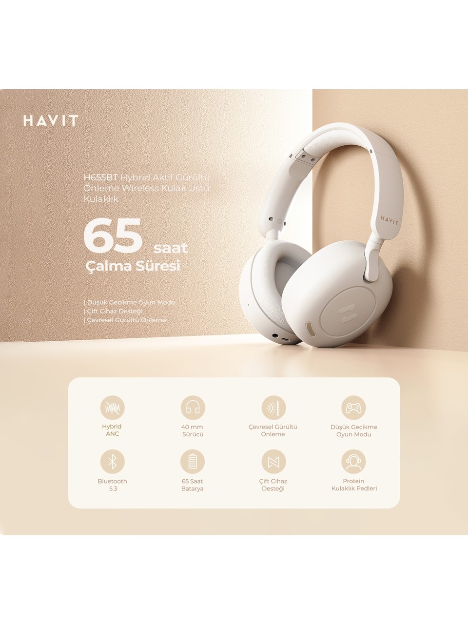 Havit H655BT Hybrid Anc Kulaküstü Bluetooth Kulaklık - 65 Saat Batarya