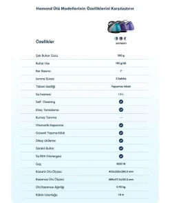 - 300 grama kadar şok buhar hızlı ile kolay ütüleme performansı.