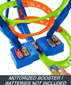 Hot Wheels Action Spiral Speed Crash Track Set, 29 inç uzunluğundaki paleti, üç çarpışma bölgesi ve arabanın hareket etmesini sağlayan motorlu bir güçlendirici ile büyük heyecanlar yaşatıyor. Dahil olan Hot Wheels aracını güçlendiriciye kadar sürün ve sürekli olarak spiralden aşağı inmesini izleyin. Meydan okumayı artırmak için, çarpışma bölgelerinden birinde kaçınılmaz bir yok olma olana kadar ilave arabalar ekleyin. Akü kutusunun ve güçlendiricinin üzerine 6 adede kadar araba saklayın. Ek arabalar ayrı satılır. Renkler ve süslemeler farklılık gösterebilir.