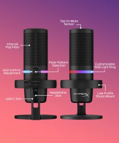Zarif bir tasarıma ve zevkli bir RGB ışık halkasına sahip olan HyperX DuoCast, oyun oynamak, çalışmak ve içerik oluşturmak için tasarlanmış tam özellikli bir USB mikrofondur.