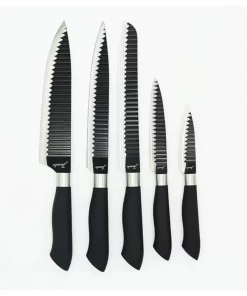 Özellikler Şef bıçağı, et bıçağı ve ekmek bıçağı 1,8 mm kalınlığında çok amaçlı bıçak ve soyma bıçağı 1,2 mm kalınlığa sahiptir. Keserken yapışmayı önleyen kabartmalı gövde çeliktir. Non-Stick kaplamalı özel bıçak ağzı ile kolay kesim sağlar. Ara bağlantı yüzüğü çeliktir. Ahşap görünümlü silikon sapa sahiptir. Sünger benzeri sert olmayan temizleme araçları ve sıvı deterjanlar kullanılarak el ile yıkama önerilir.