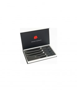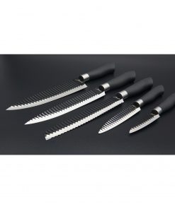 Özellikler Şef bıçağı, et bıçağı ve ekmek bıçağı 1,8 mm kalınlığında çok amaçlı bıçak ve soyma bıçağı 1,2 mm kalınlığa sahiptir. Keserken yapışmayı önleyen kabartmalı gövde çeliktir. Non-Stick kaplamalı özel bıçak ağzı ile kolay kesim sağlar. Ara bağlantı yüzüğü çeliktir. Ahşap görünümlü silikon sapa sahiptir. Sünger benzeri sert olmayan temizleme araçları ve sıvı deterjanlar kullanılarak el ile yıkama önerilir.