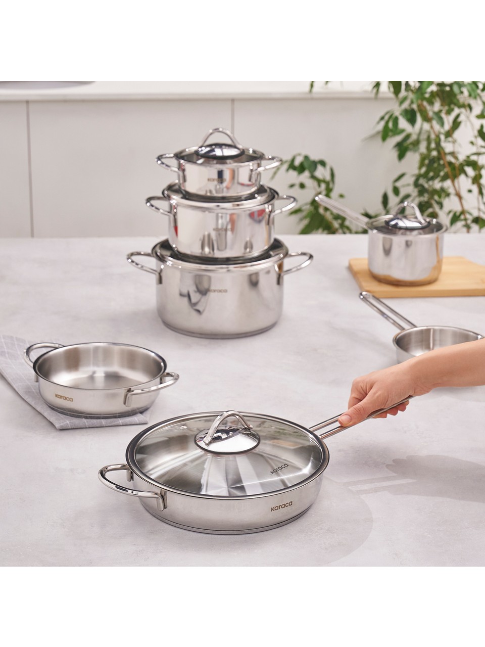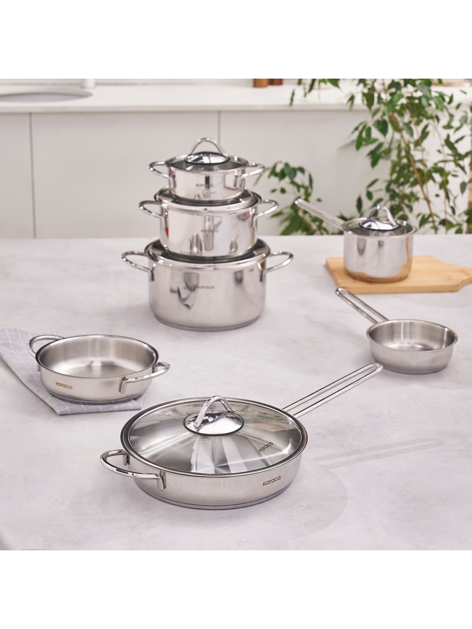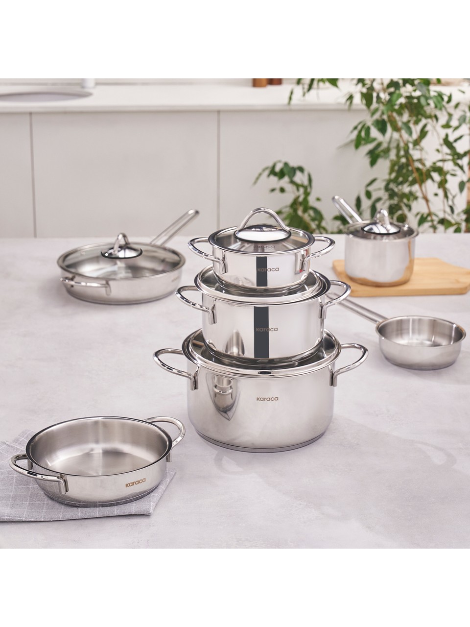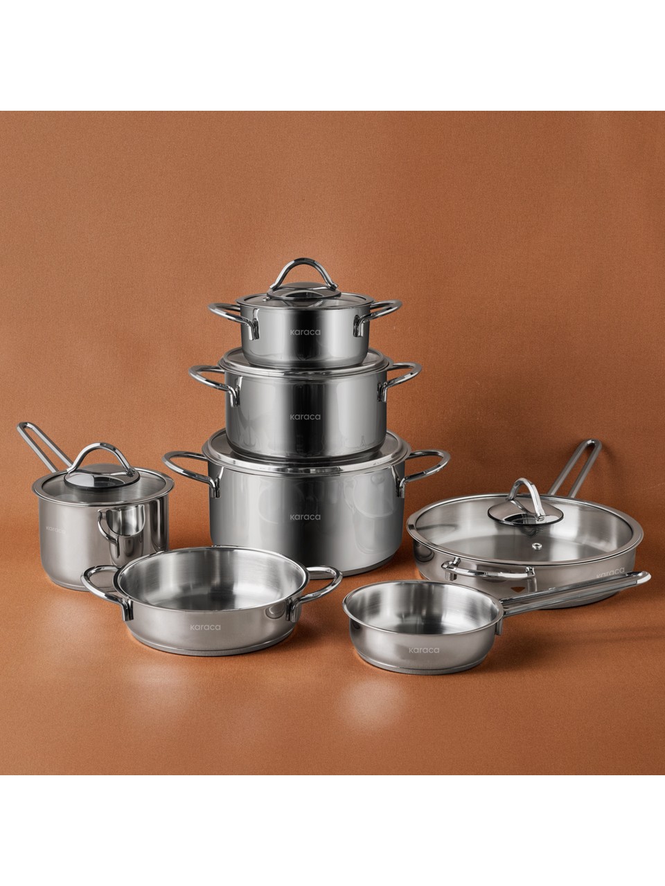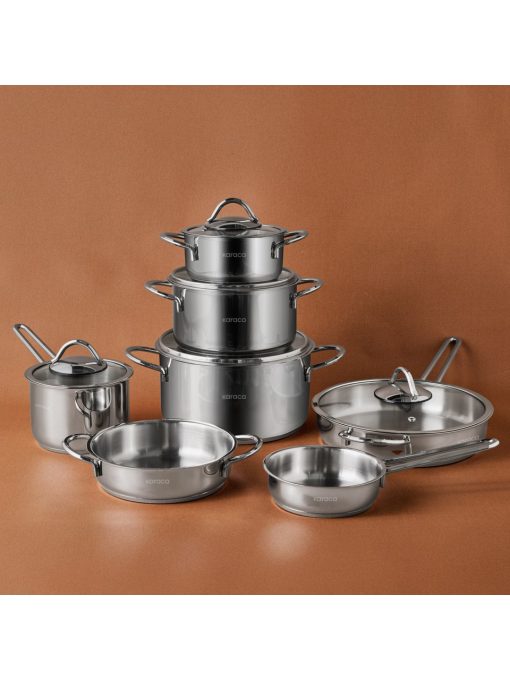 Karaca Ada 12 Parça Indüksiyon Tabanlı Çelik Çeyiz Tencere Seti V2