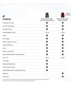Sağlıklı kızartmalardan köz tadında lezzetlere, Fırın/ Izgara tariflerinden ev yoğurduna, ısıtmadan sebze ve meyve kurutmaya kadar uzanan hazır programlarıyla Karaca Air Pro Cook Köz ile her tarifinizin lezzetine sağlık katabilirsiniz.