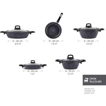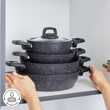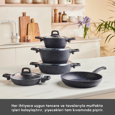 Karaca Bio Granit Blue Stone 9 Parça Tencere Seti