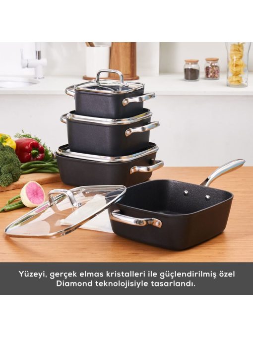 Karaca Biodiamond Quattro Indüksiyon Tabanlı 8 Parça Tencere Seti