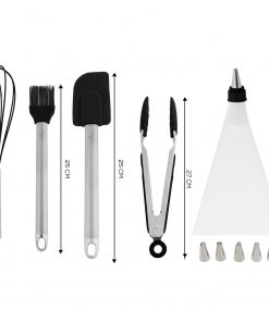Karaca Cake 10 Parça Pasta Servis Gereci Black Ürün İçeriği 1 Adet Çırpıcı 1 Adet Fırça 25 cm 1 Adet Spatula 25 cm 1 Adet Krem Çanta (31 cm x 17,5 cm) 1 Adet Maşa 27 cm 5 Adet Duy Malzeme Türü: Silikon Elde yıkanması tavsiye edilir.
