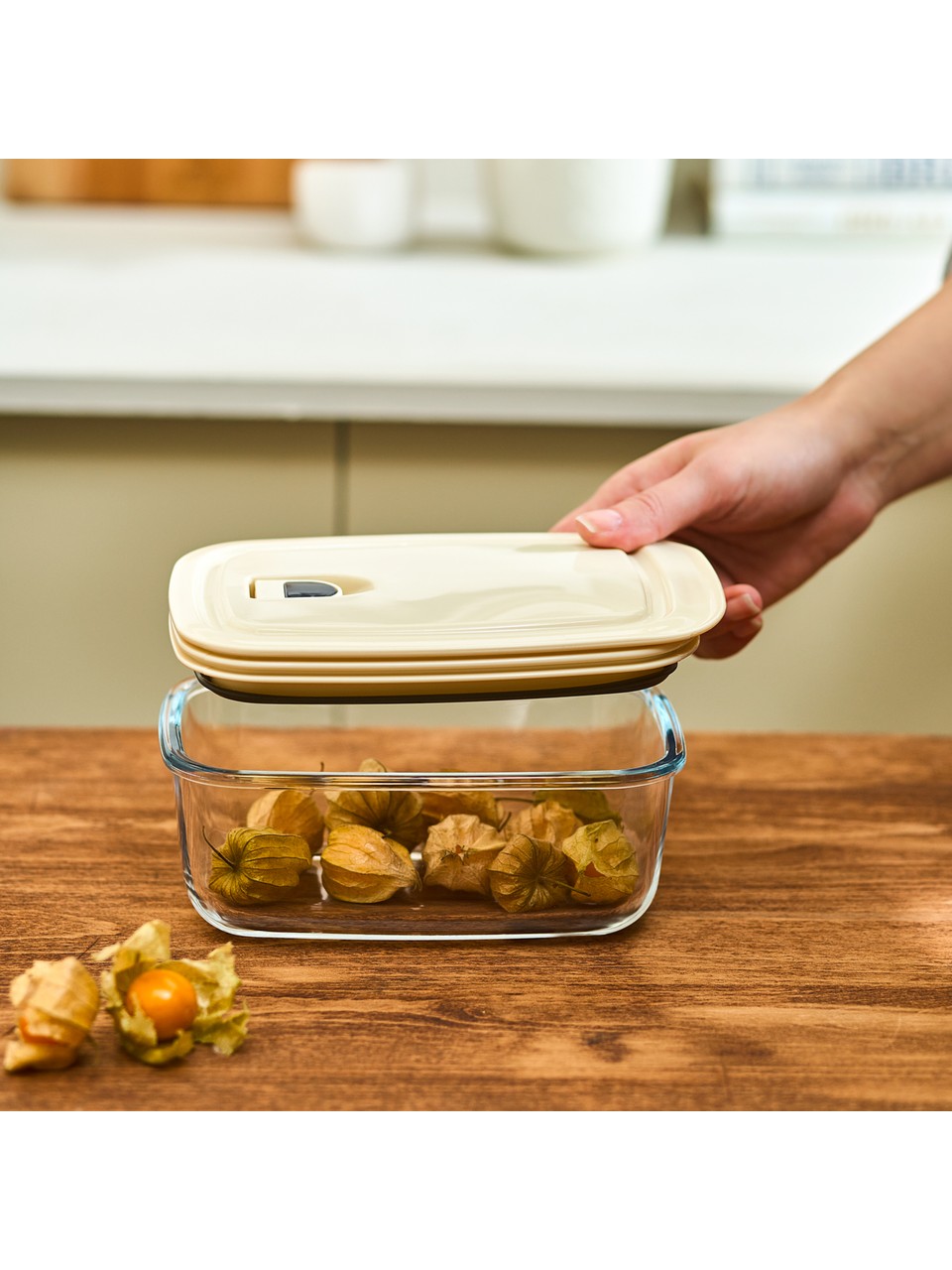 Karaca Cream Vakumlu Kapaklı Cam Saklama Kabı 0.83 Lt