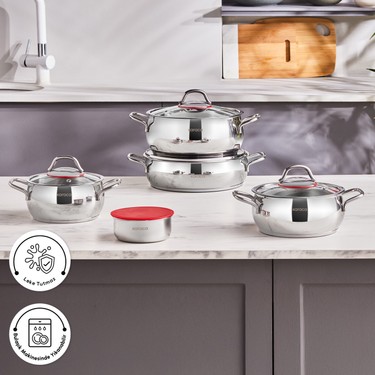 Karaca Emirgan XL Saklama Kaplı 10 Parça Çelik Tencere Seti