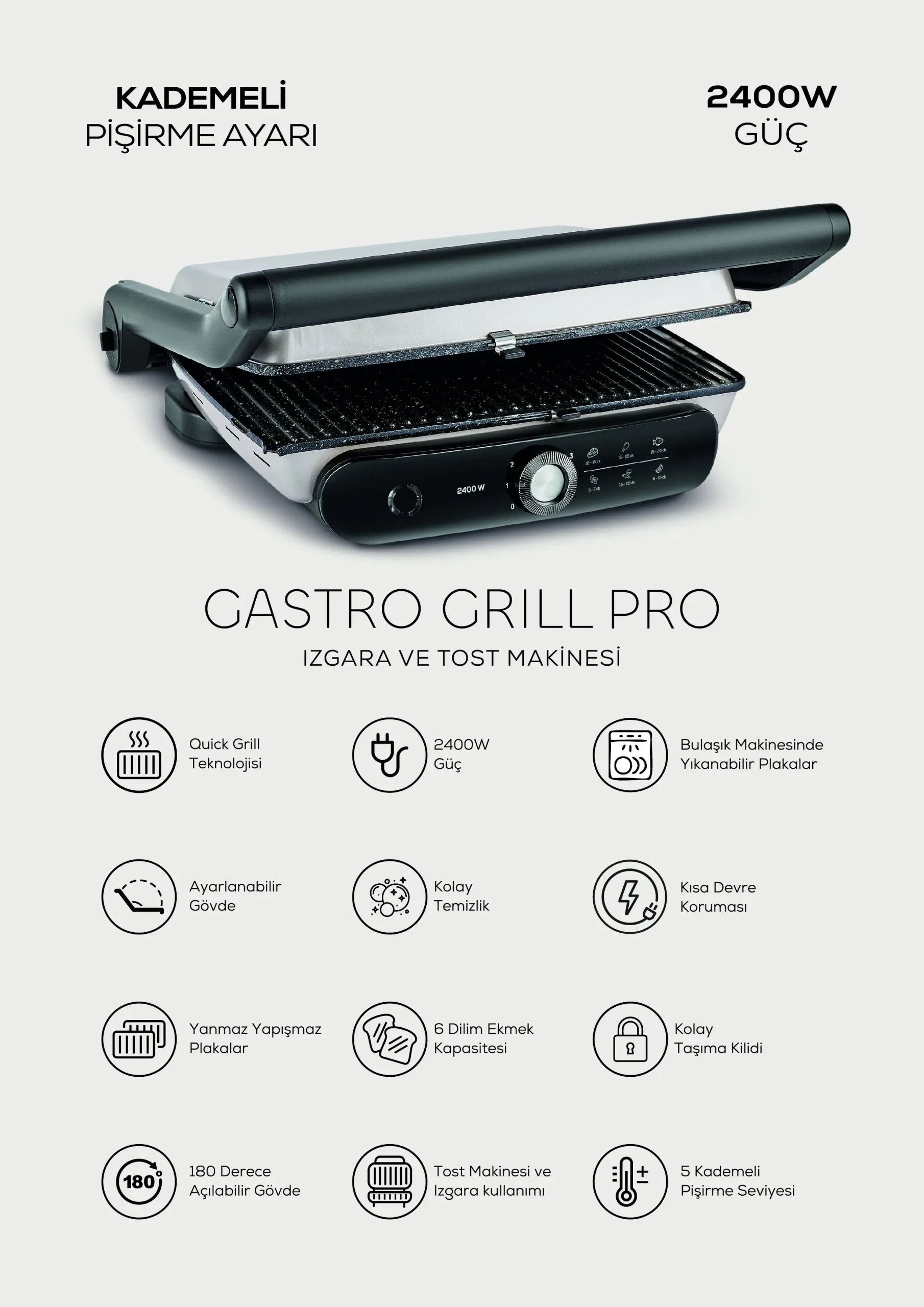 - 2400 Watt gücü ve ızgara özelliği ile tost, et, tavuk veya sebzelerinizi lezzetli bir şekilde hazırlayabilirsiniz.