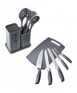 1 Adet Şef Bıçağı (20 cm) 1 Adet Dilimleme Bıçağı (20 cm) 1 Adet Ekmek Bıçağı (20 cm) 1 Adet Doğrama Bıçağı (13 cm) 1 Adet Soyma Bıçağı (9 cm) 1 Adet Makarna Kaşığı 1 Adet Kaşık 1 Adet Süzgeç 1 Adet Oluklu Spatula 1 Adet Çorba Kaşığı 1 Adet Kesme Tahtası 1 Adet Blok