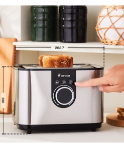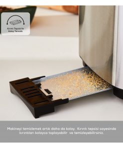 850 W Güç Paslanmaz Çelik Gövde Yeniden Isıtma Buz Çözme ve İptal Fonksiyonları Kolay Kullanım Sunan Döndürme Topuzu LED Ekran Kırıntı Tepsisi ile Kolay Temizlik 7 Kademeli Kızartma Ayarı