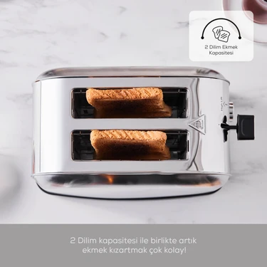 Geniş iç tasarımıyla, aynı anda 2 dilim ekmeği rahatlıkla kızartabilirsiniz.