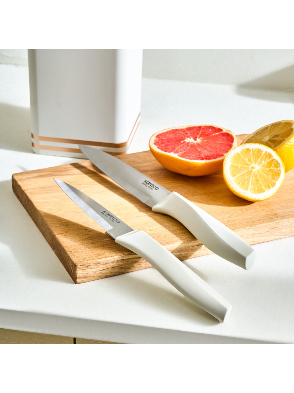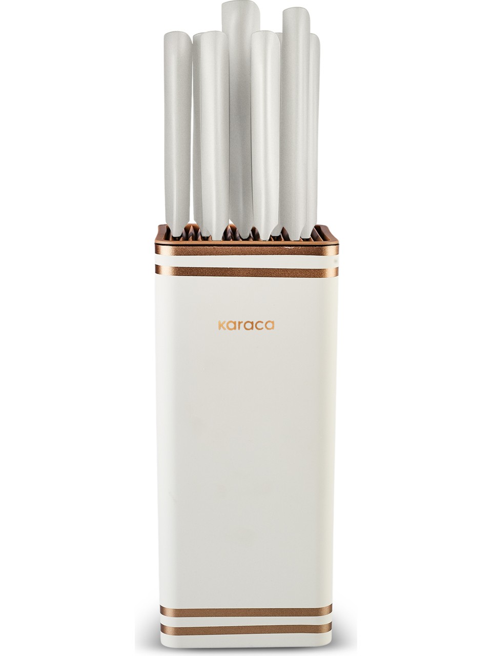 - Karaca Megacut Square 9 Parça Bıçak Seti Krem Set İçeriği 1 Adet Şef Bıçağı (32 cm/1,5 mm