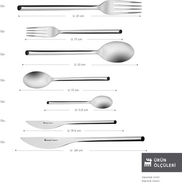 12 Kişilik Çatal Kaşık Bıçak Takımı