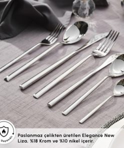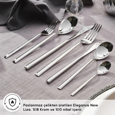 Karaca Liza Elegance 84 Parça 12 Kişilik Çatal Kaşık Bıçak Takımı Kutulu Set İçeriği 12 Adet Yemek Çatalı (21 cm) 12 Adet Yemek Kaşığı (21 cm) 12 Adet Yemek Bıçağı (24 cm) 12 Adet Tatlı Çatalı (17 cm) 12 Adet Tatlı Kaşığı (17 cm) 12 Adet Tatlı Bıçağı (19.5 cm) 12 Adet Çay Kaşığı (11.5 cm) Malzeme: Çelik 2 yıl garantilidir.