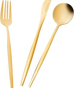 - Çatal, bıçak ve kaşık olmak üzere üç parçadan oluşan set, her türlü yemek deneyimini tamamlayıcı bir aksesuar sunar