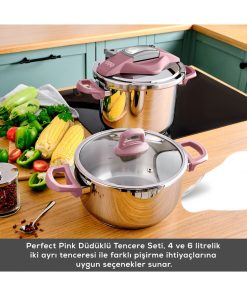 Karaca Perfect Pink İndüksiyon Tabanlı Düdüklü Tencere Seti 4+6 Lt