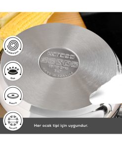 - Geliştirilmiş taban sistemi sayesinde eşit ısı dağılımı sağlar, indüksiyon dahil tüm ocaklarda kullanıma uygundur.