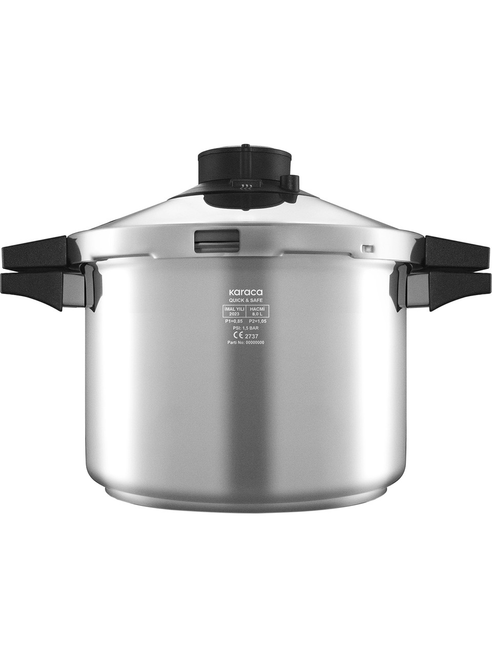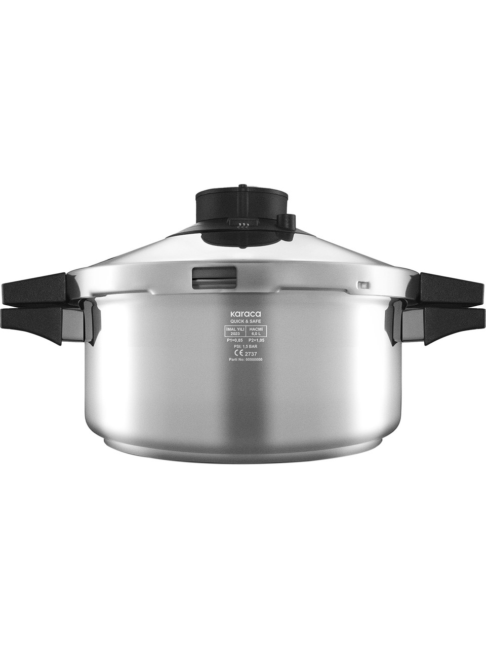 - Karaca Quick and Safe İndüksiyon Tabanlı Düdüklü Tencere Seti 6+8 Lt Tam güvenli 6’lı kilit sistemiyle tencere içindeki basıncı koruyan Karaca Quick&Safe düdüklü tencere seti, renkli basınç göstergesiyle de tenceredeki basınç durumuyla ilgili bilgi verir. Açık yeşil halka basıncın yükseldiğini, koyu yeşil halka ise pişirme seviyesine ulaşıldığını gösterir. 2 farklı programı sayesinde
