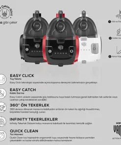 - Easy Catch Kablo Sistemi sayesinde temizlik işlemi bittikten sonra güç kablosunu tuşa basılı tutmaya gerek kalmadan